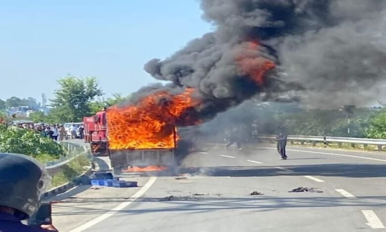 Fire in moving pickup vehicle, driver saved his life by jumping